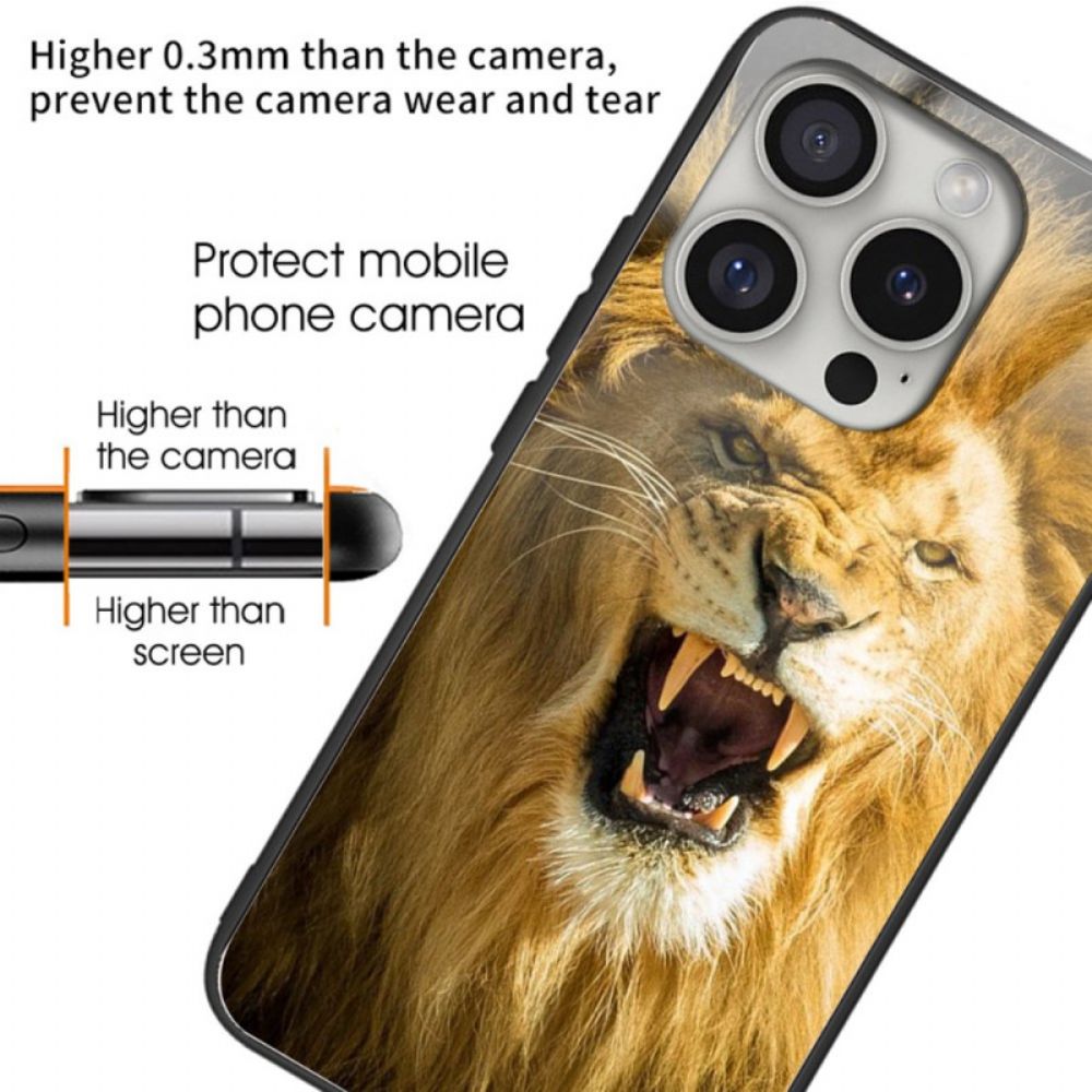 Cover Hoesje iPhone 16 Pro Telefoonhoesje Gehard Glas Met Leeuwenpatroon