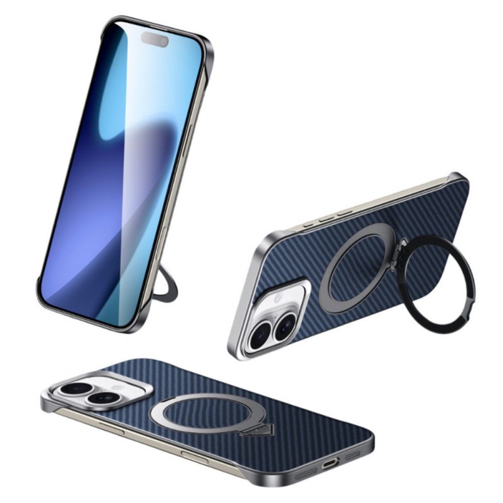 Pronk met een moderne, sportieve look met de SULADA-hoes voor iPhone 17. voorzien van een afwerking van PU-leer met koolstofvezel-effect. Het hybride ontwerp van hoogwaardig PU-leer en stevig PC-materiaal beschermt effectief tegen krassen, stoten en dagelijkse slijtage, terwijl het een slank en licht profiel behoudt. De hoes is MagSafe-compatibel, waardoor snel en veilig draadloos opladen mogelijk is en magnetische accessoires perfect passen. De geïntegreerde, verstelbare standaard biedt een comfortabele handsfree ervaring voor je video's en gesprekken, terwijl het slanke, frameloze ontwerp de lijnen van de smartphone benadrukt.