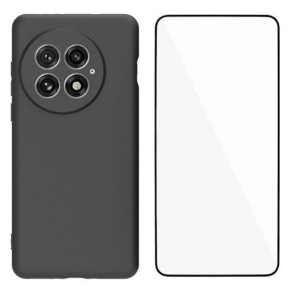 Cover Hoesje Oneplus 13 Telefoonhoesje 2-in-1 Matte Siliconen Met Schermbeschermer Van Gehard Glas