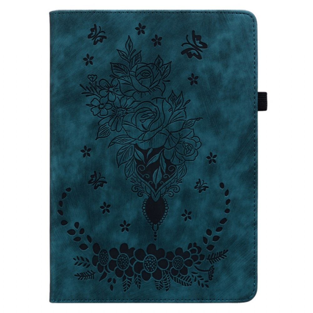 Ontdek onze Hoesje voor Samsung Galaxy Tab S10 Plus / S9 Plus, ontworpen met een chique en elegante vlinder- en rozenprint.