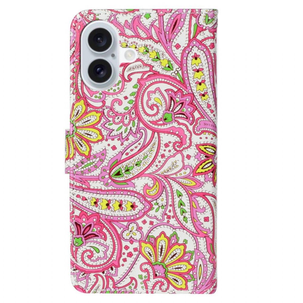 Flip Case Leren iPhone 16 Bloemmotief Met Riempje
