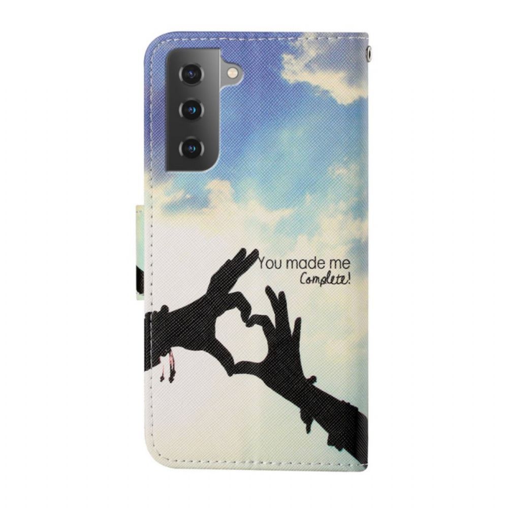 De You Made Me Complete Cover met Lanyard beveiligt de hele Samsung Galaxy S22 Plus 5G en dient als portemonnee.