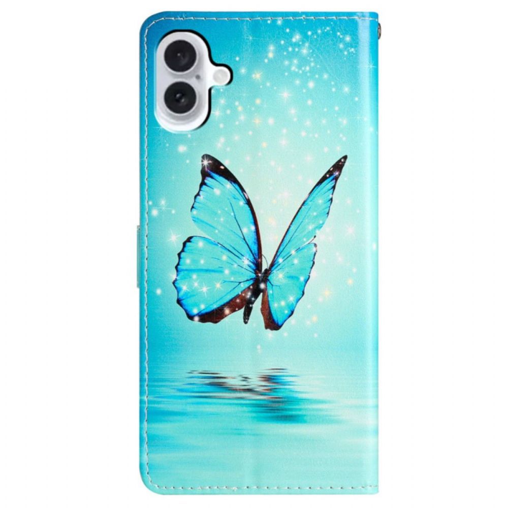 Folio-hoesje iPhone 16 Telefoonhoesje Blauwe Vlinder Met Riem
