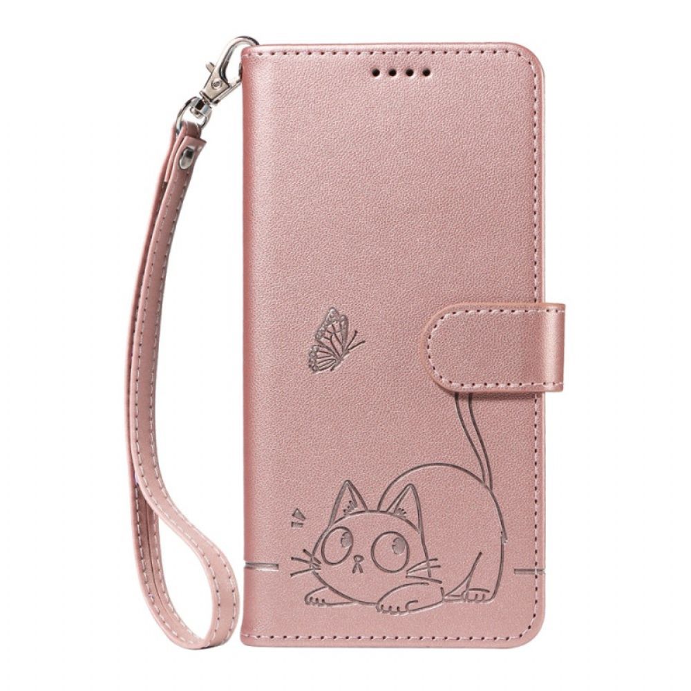 Folio-hoesje Samsung Galaxy S25 Fe Telefoonhoesje Kattenprint Met Bandje