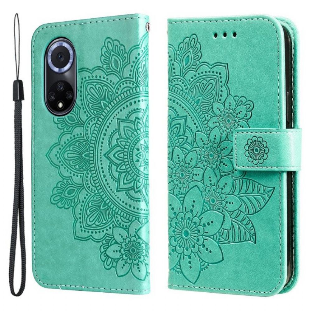 Een Prachtig Hoesje Voor De Honor 50 / Huawei Nova 9 Met Een Mandala-Ontwerp Van Een Zon Die Ook Dienst Doet Als Portemonnee En Standaard.