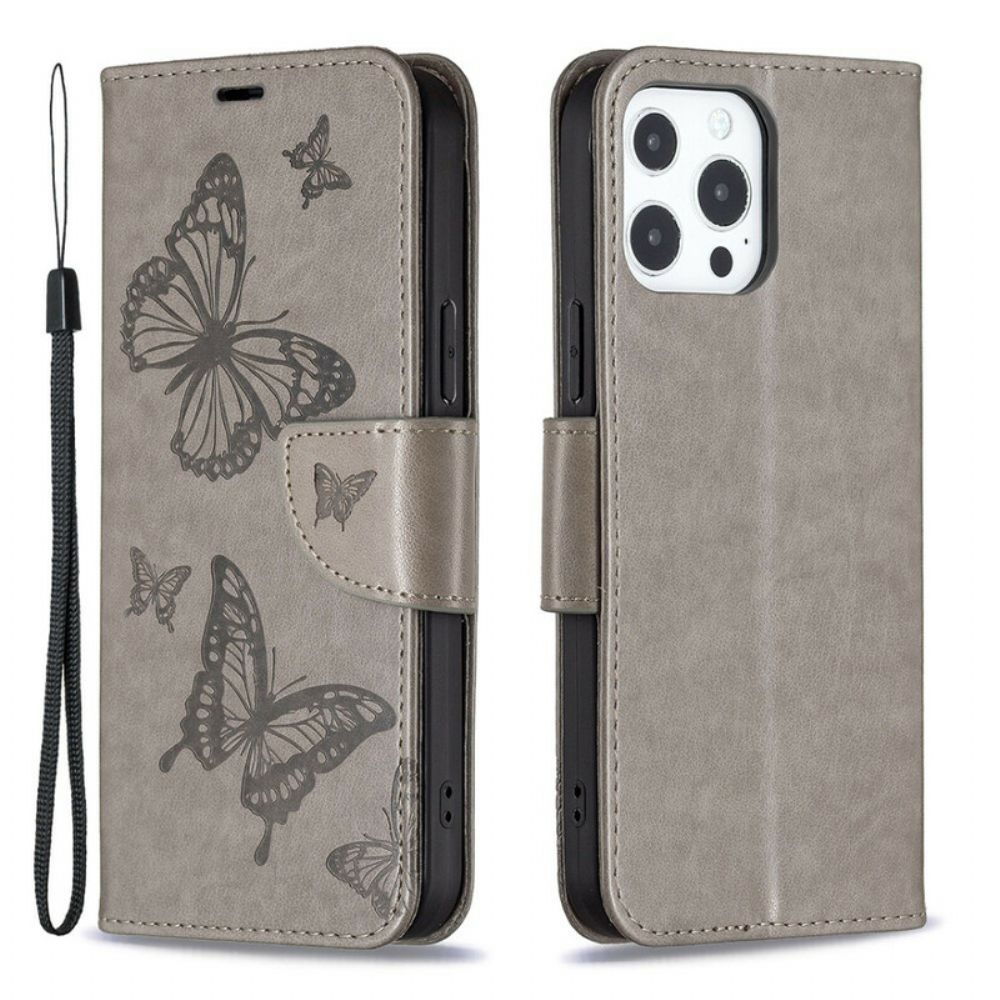 Folio-hoesje voor iPhone 13 Pro Met Ketting Bandje Met Vlinderprint