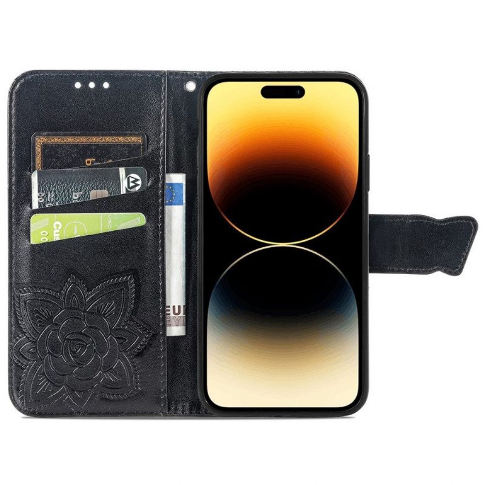 Folio-hoesje voor iPhone 15 Pro Max Met Ketting Barok Vlinder Met Riem