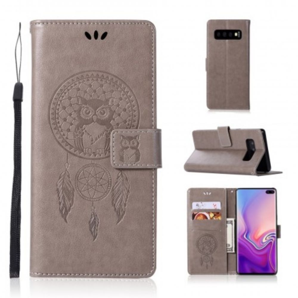 Een prachtige hoes met leereffect voor de Samsung Galaxy S10 Plus met een dromenvanger-ontwerp met een welwillende uil.