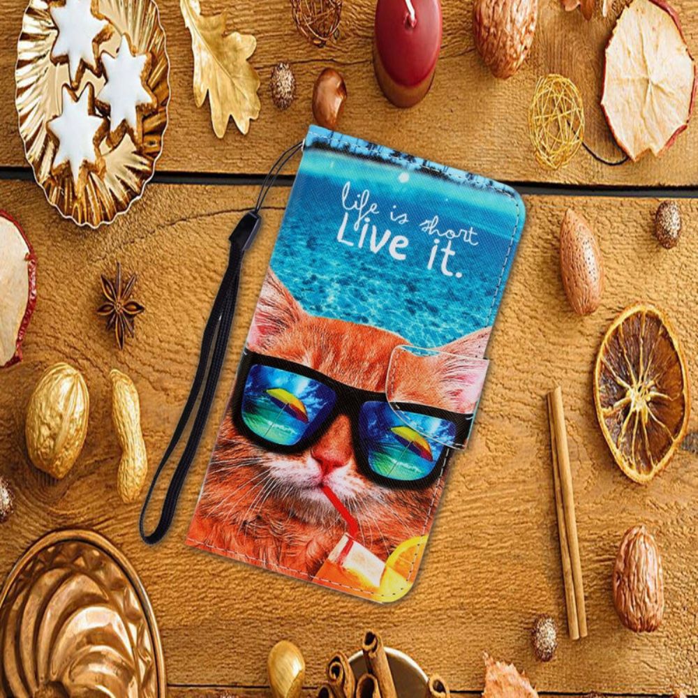 Folio-hoesje voor Samsung Galaxy S21 5G Met Ketting Kat Leeft Het Met Bandjes