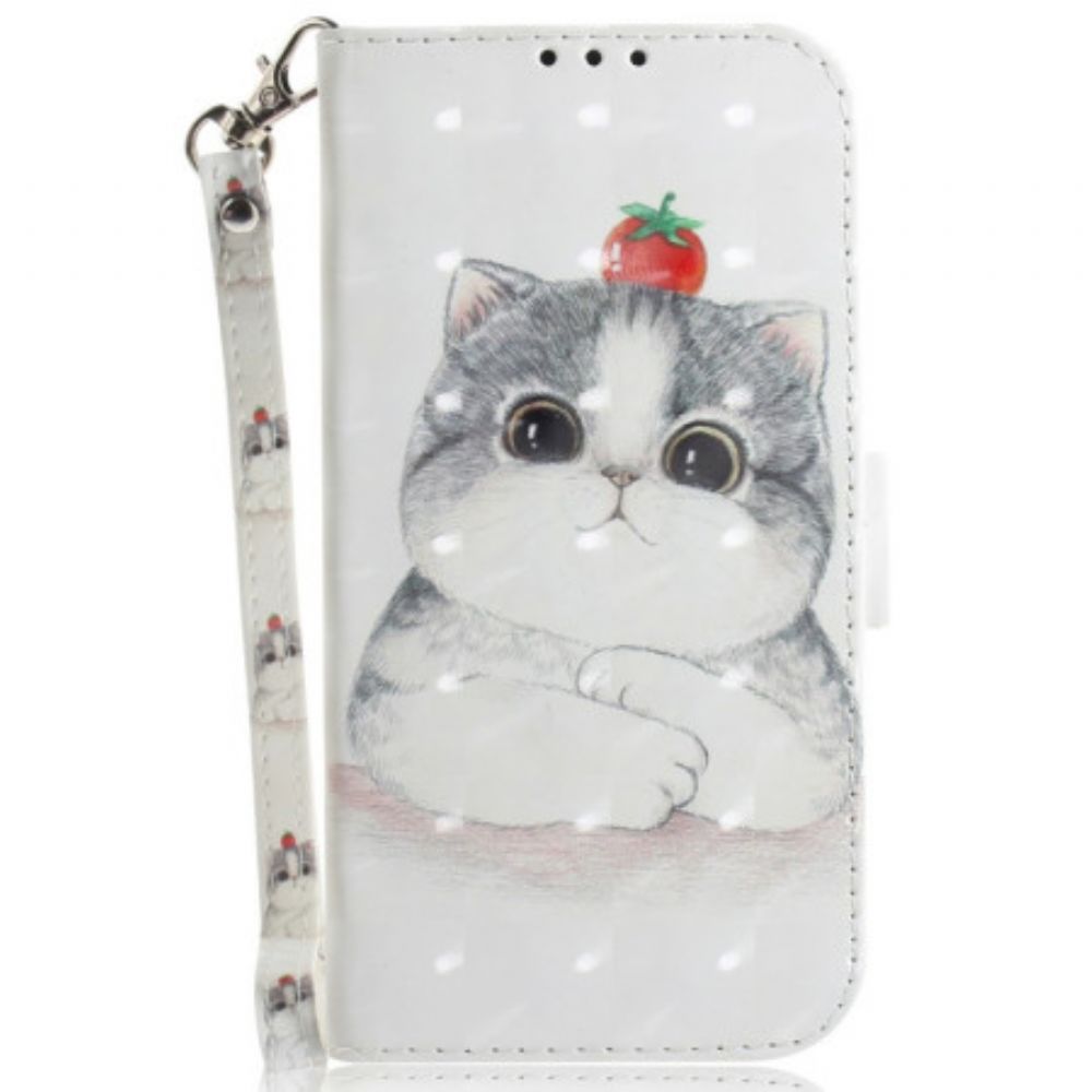 Folio-hoesje Xiaomi Redmi Note 14s Sleutelkoord Met Kat En Aardbei