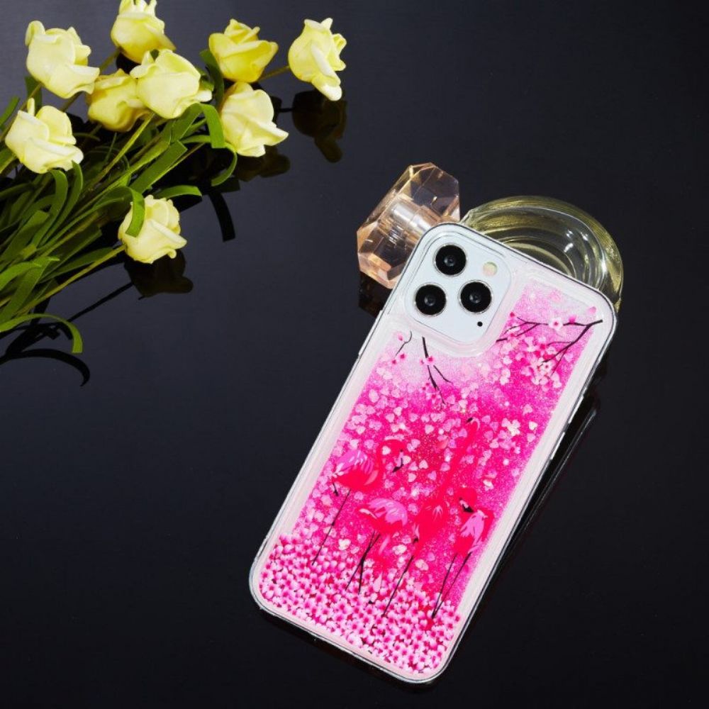 Aarzel Niet Om De Bescherming Van Je Iphone 15 Pro Toe Te Vertrouwen Aan Roze Flamingo'S Met Dit Unieke Glitterhoesje.