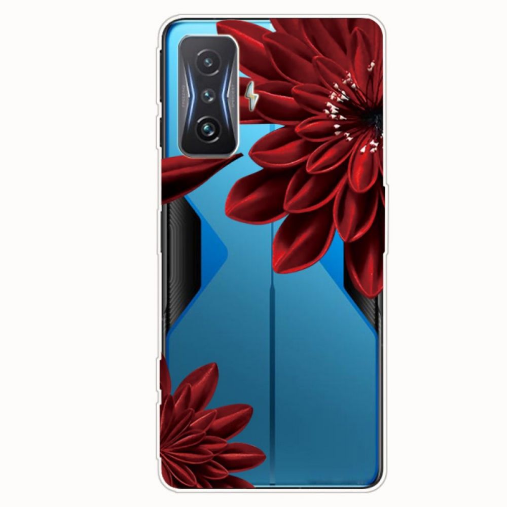De transparante Red Flower hoes beschermt de Poco F4 GT zeer goed en geeft hem een elegante uitstraling.