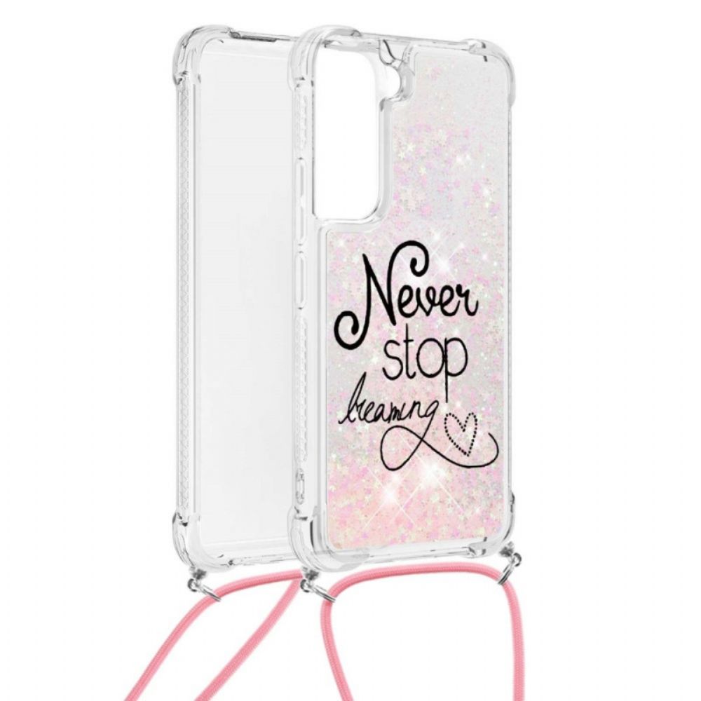 Hoesje voor Samsung Galaxy S22 Plus 5G Met Koord Stop Nooit Met Glitterkoord