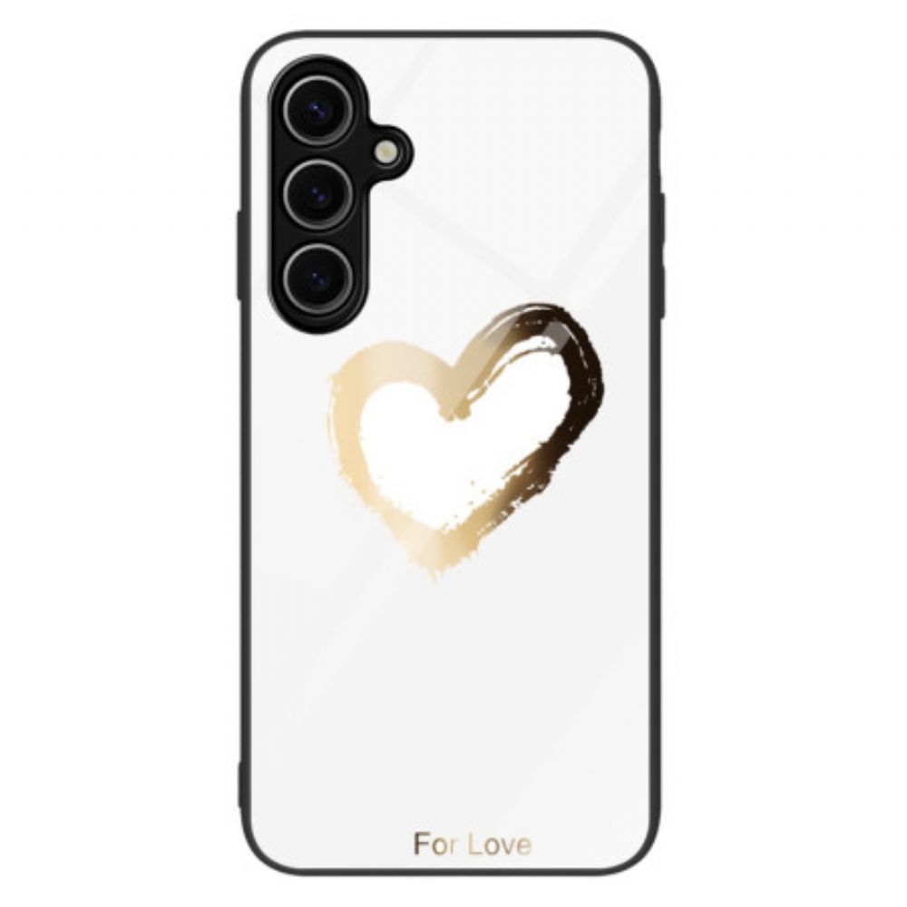 Hoesje Voor Samsung Galaxy S25 5g Gouden Hart Op Witte Achtergrond Gehard Glas