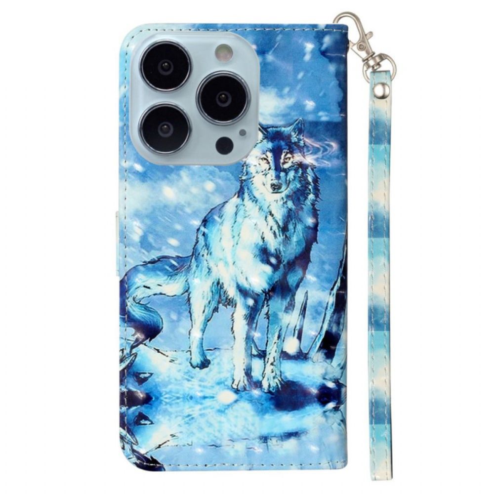 Leren Hoesje iPhone 16 Pro Vastgebonden Sneeuwwolf Bescherming Hoesje