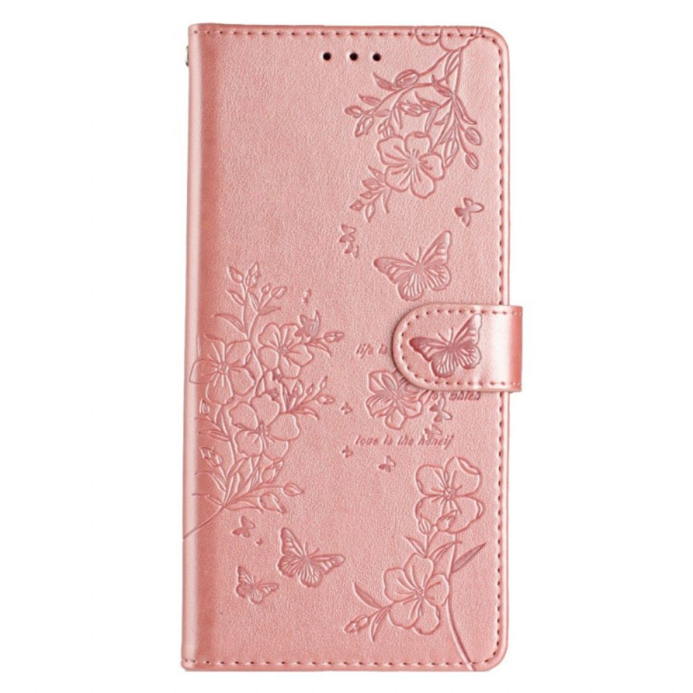 Leren Hoesje Poco C75 Vlinder- En Bloemenpatroon