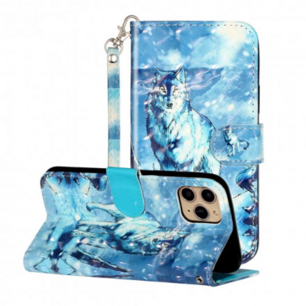 Leren Hoesje voor iPhone 11 Pro Max Met Ketting Wolf Lichtband Schijnwerpers