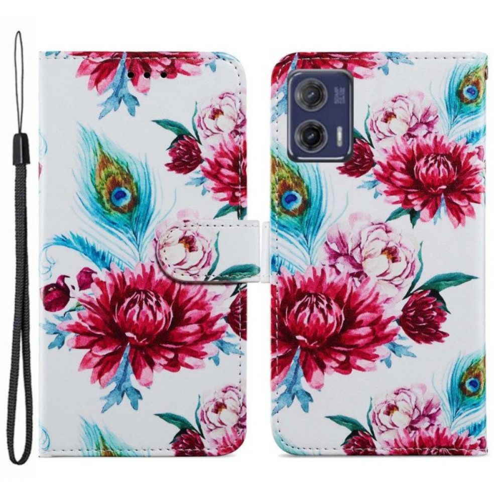 Je Moto G73 5G Ziet Er Geweldig Uit Met Deze Bloemenhoes Die Wordt Geleverd Met Een Handig Draagkoord.