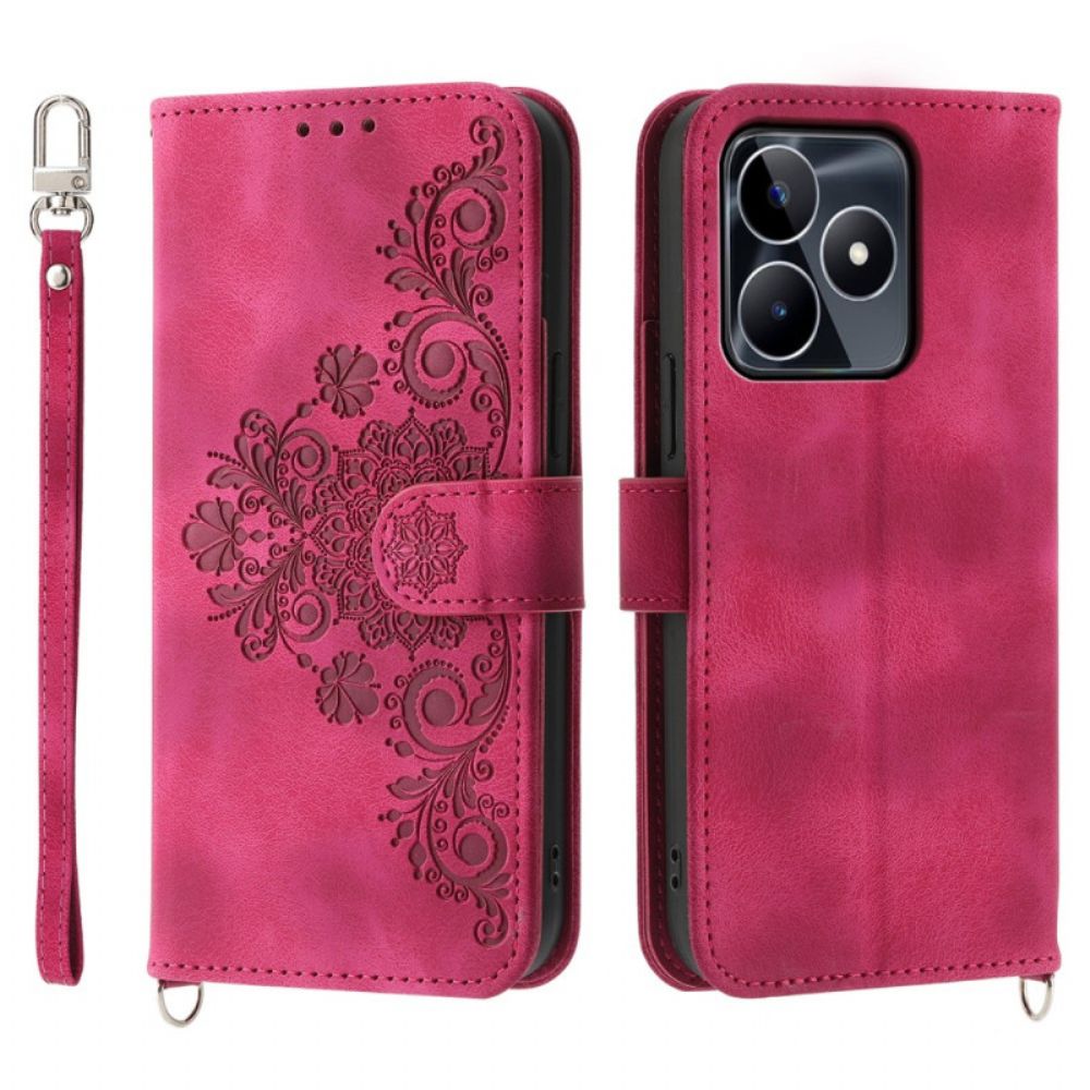Leren Hoesje Voor Realme C53 Bloemenprint Met Bandje En Schouderbandje