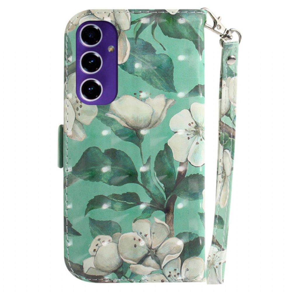 Leren Hoesje Voor Samsung Galaxy S24 Fe Aquarelbloemen Met Riempje
