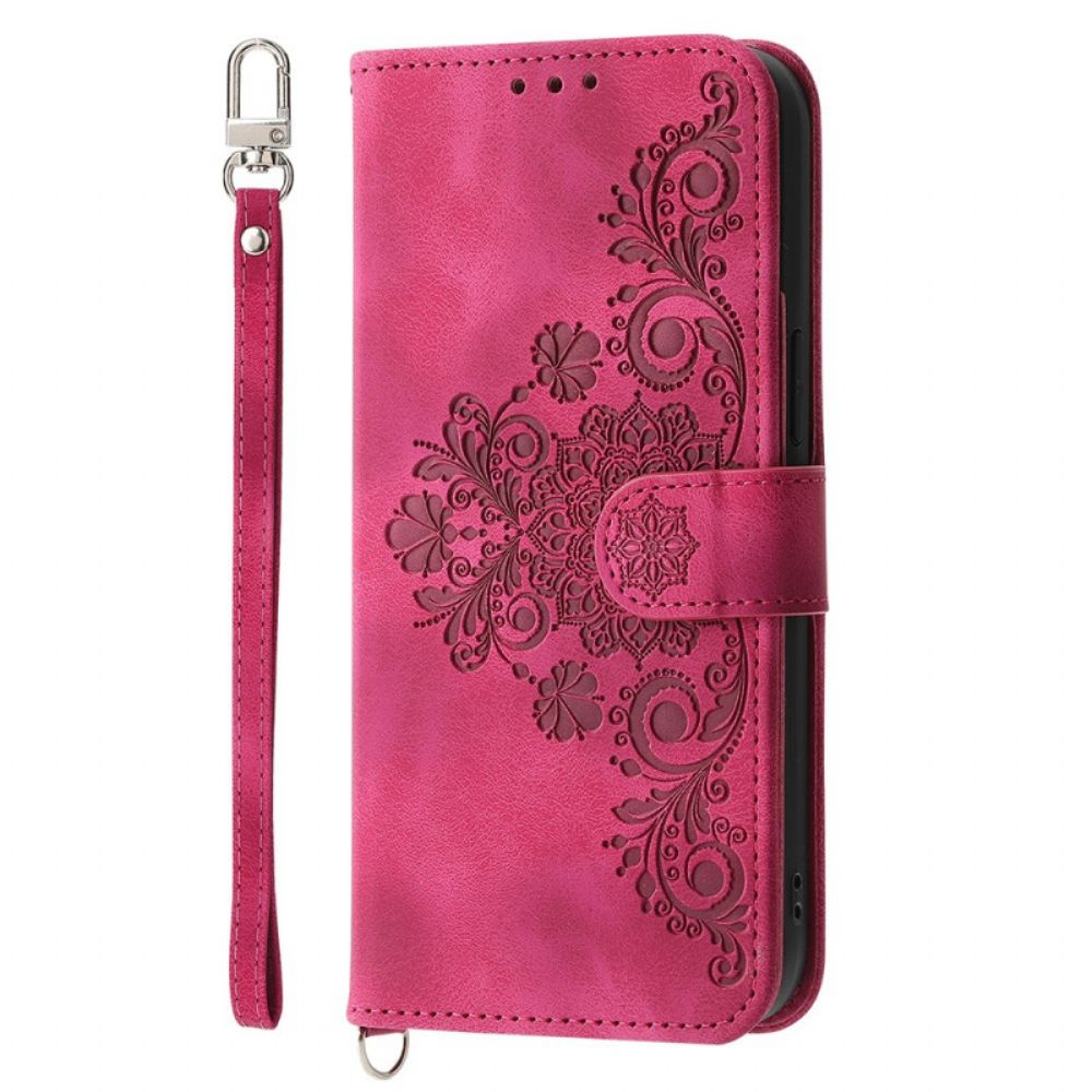 Leren Hoesje Voor Samsung Galaxy S25 Fe Kantprint Met Bandje En Schouderband