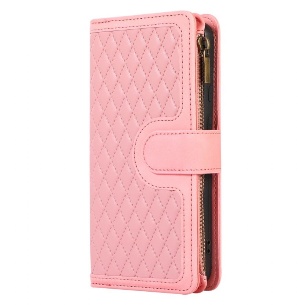 Multifunctionele hoes voor Samsung Galaxy S26 5G met 9 kaartsleuven, 2 vakken voor briefjes en een vak met ritssluiting. Met een handsfree standaardfunctie, een veilige magnetische sluiting en een afneembaar polsbandje.