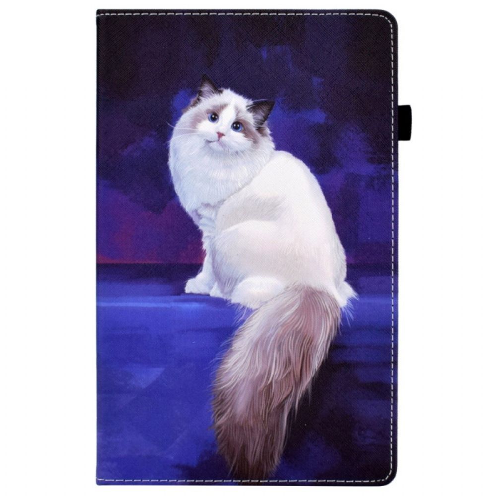 Leren Hoesje voor Samsung Galaxy Tab A8 Witte Kat