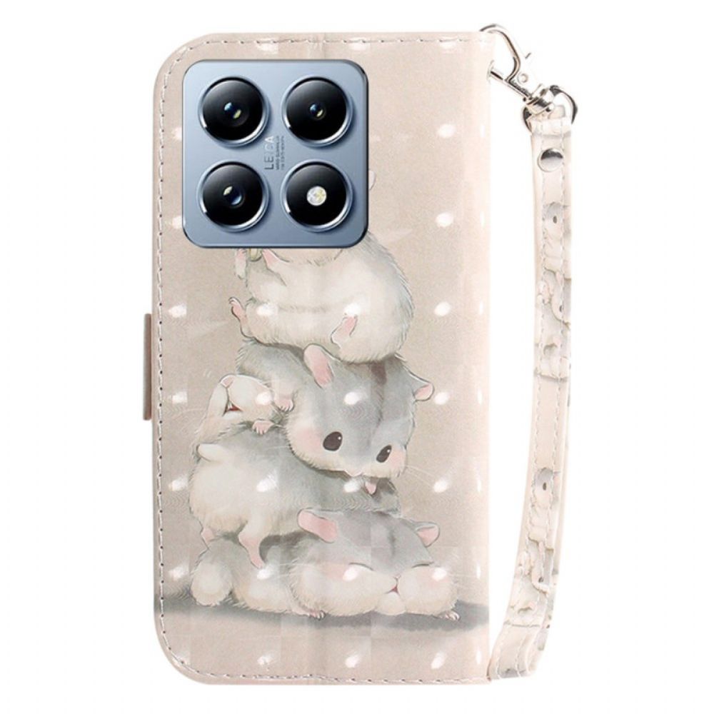 Leren Hoesje Xiaomi 14t Pro Hamsters Met Riem