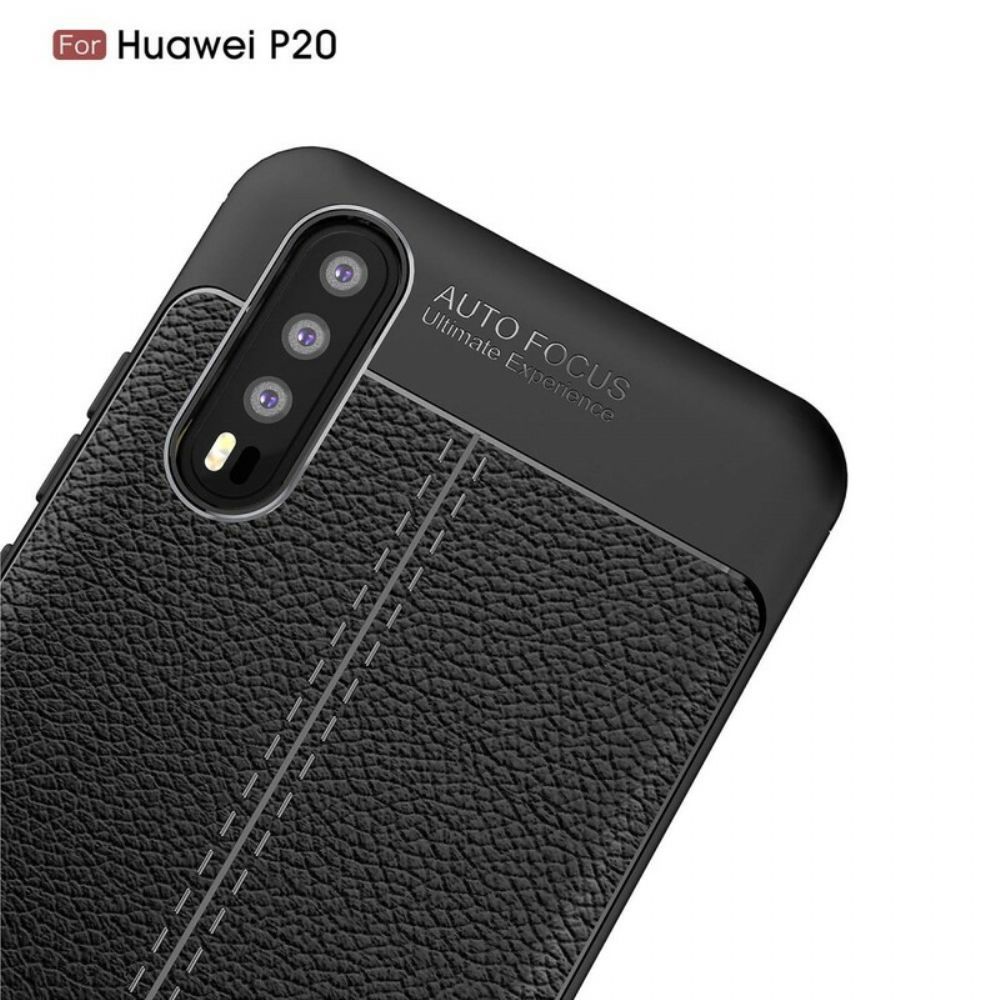 Telefoonhoesje voor Huawei P20 Dubbele Lijn Litchi Leder Effect