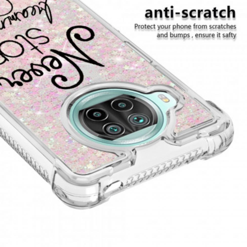 Een glinsterende hoes en de woorden Never Stop Dreaming voor je Xiaomi Mi 10T Lite 5G / Redmi Note 9 Pro 5G.